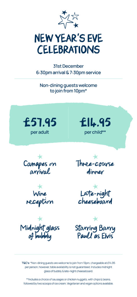 That time of year has rolled around again, and so have our New Year’s celebrations! Bring your family, friends or loved ones and join us for an unforgettable celebration by indulging in our carefully crafted menu and late-night disco, starring Barry Paull as Elvis!