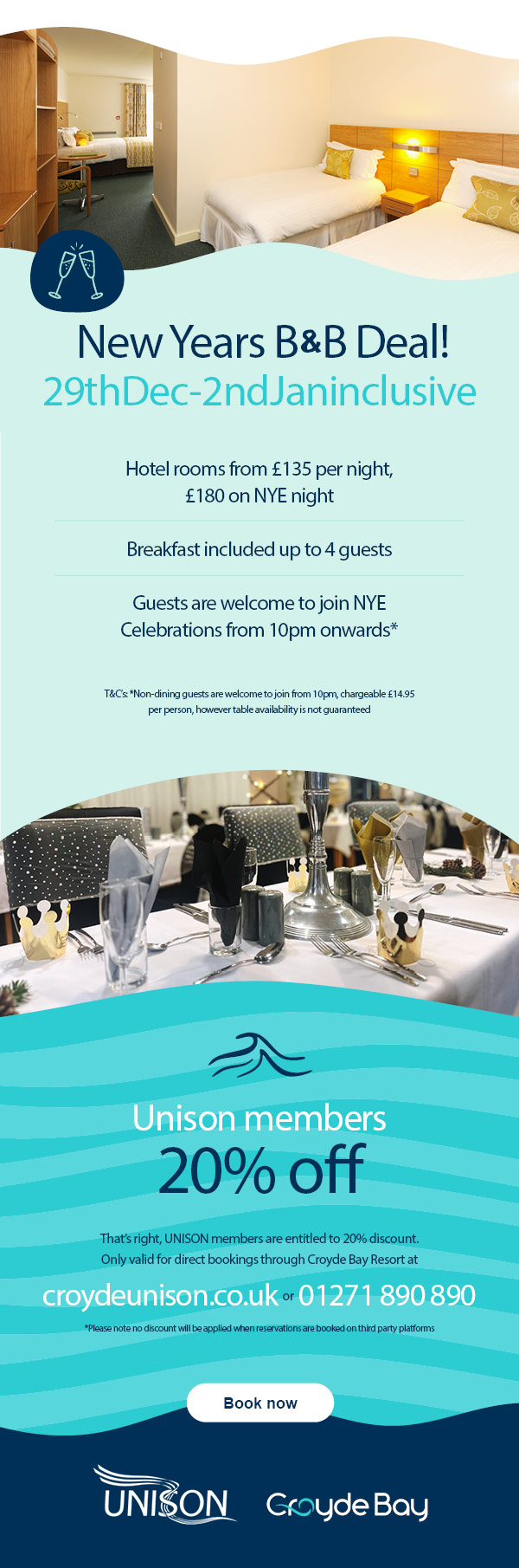 20% discount on all standard rates for UNISON members – just select the member price when you book online or contact us on 01271 890890.